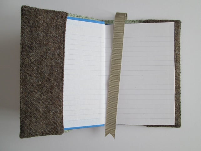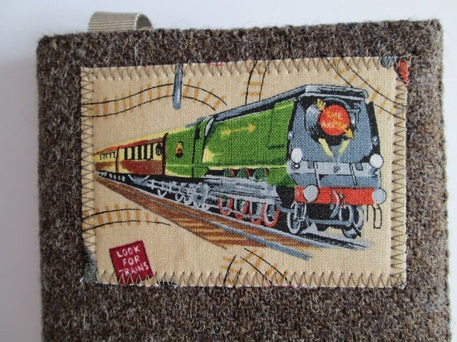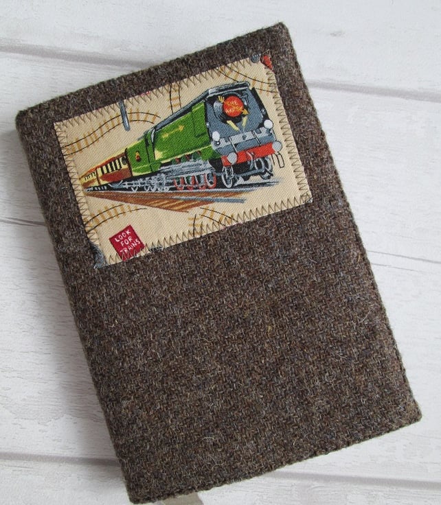 I've teamed a piece of minky brown, handwoven 'Harris Tweed' with a snippet from my scrap box featuring a steam engine to make this rather smart A6 notebook cover. Lined with a soft green cotton print and incorporating a ribbon place marker, it also has the official 'Harris Tweed' label on the reverse. Complete with either a lined notebook or a 2020 Week to View diary, it would be a great gift for a train spotter or railway enthusiast.