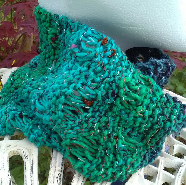 This size is an easily wearable neck warmer which you can just pop on quickly for some extra warmth. I can make these in a bigger size (depth and width) if you need something more substantial. The cotton silk mix is a lovely and lightweight fabric. Great for in between seasons or cool evenings.