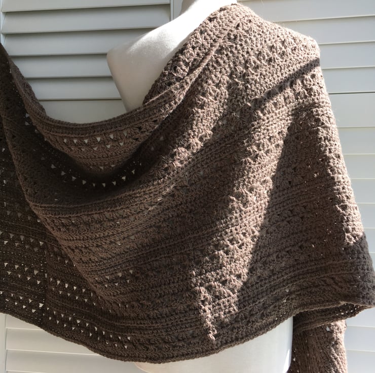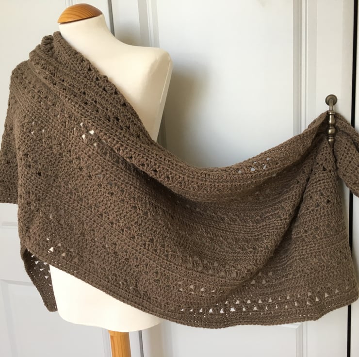 Back to the drawing board to start again this time with a lace crochet pattern and the result is a extremely squishy rectangular shawl, almost a comfort blanket and so soft!!!