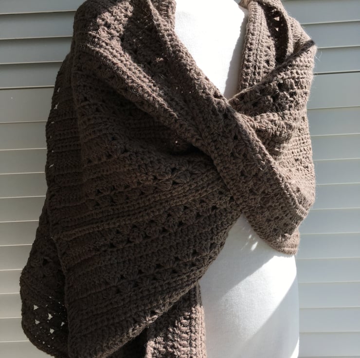 35% superfine alpaca and 20% wool mix yarn makes this hand made generous shawl very soft, warm and super squishy.