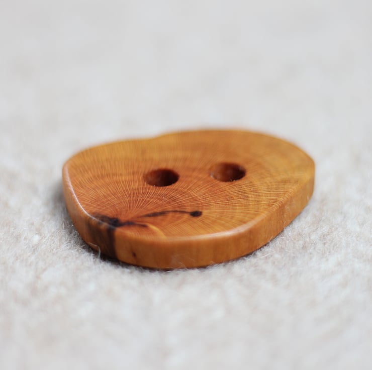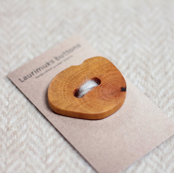 Handcrafted large statement wooden button made out of reclaimed forest tree branch.