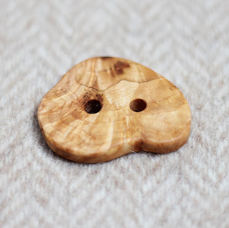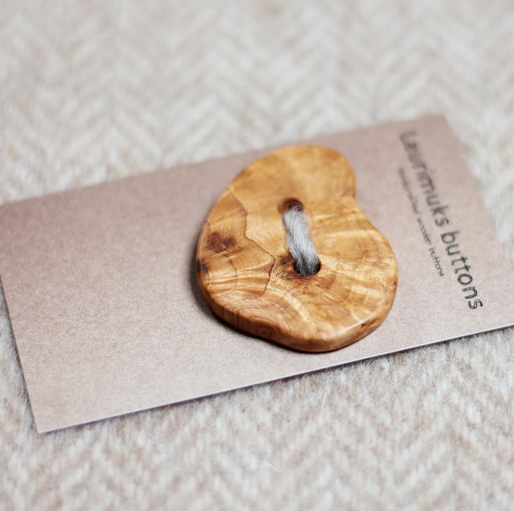 Handcrafted large statement wooden button made out of reclaimed forest tree branch.