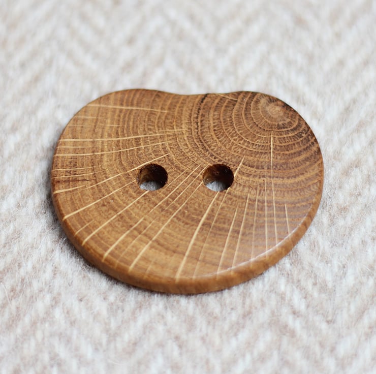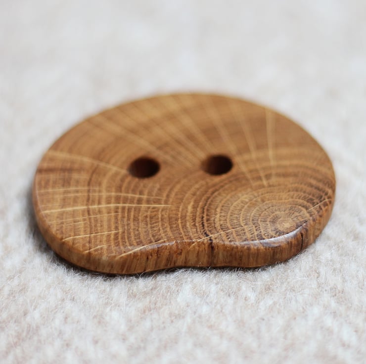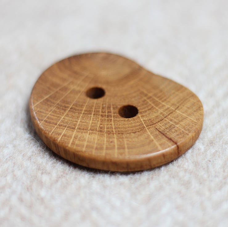 Handcrafted large statement wooden button made out of reclaimed Oak tree branch.