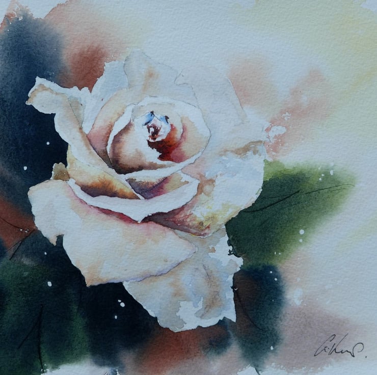 My paintings are inspired by places, memories and feelings. Sometimes I start with a sky and see where it leads me. This particular painting is an impressionist piece, a beautiful Rose.