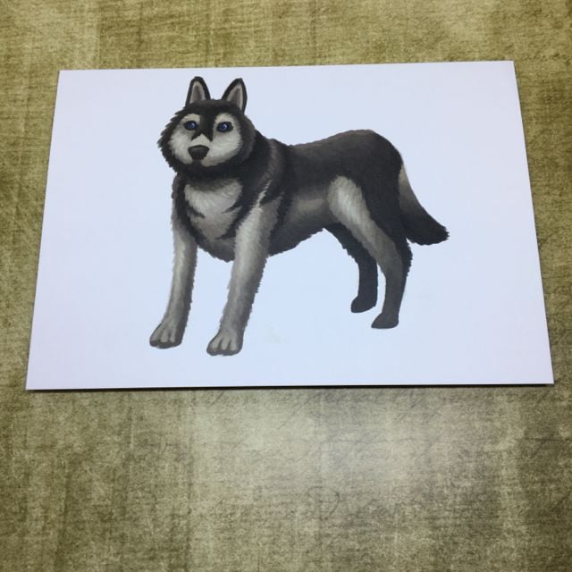 A lovely Husky Dog post card by DuffleCat Prints (Damian Case). Front of card with design on is Gloss coated. Back of card is blank and uncoated for your message. 127mm x 177.8mm. 330gsm card stock. Landscape.