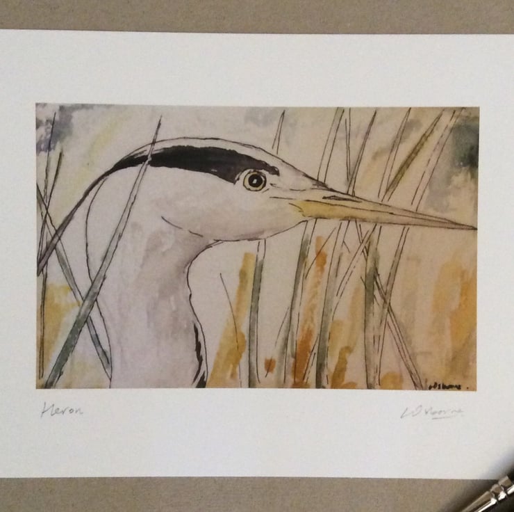 Heron - high quality, open edition print from my pen, ink and watercolour drawing of a heron.