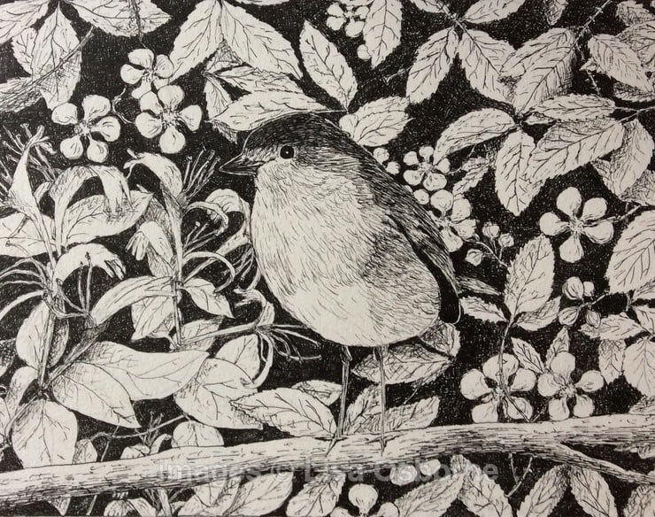 Robin - print from my pen and ink drawing of a robin, a regular visitor to our garden.