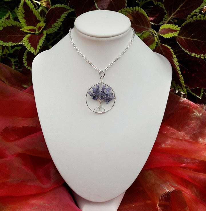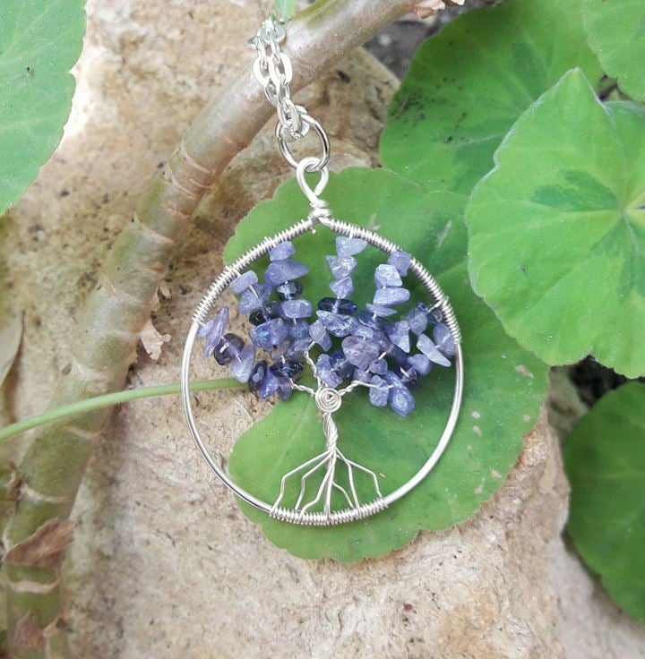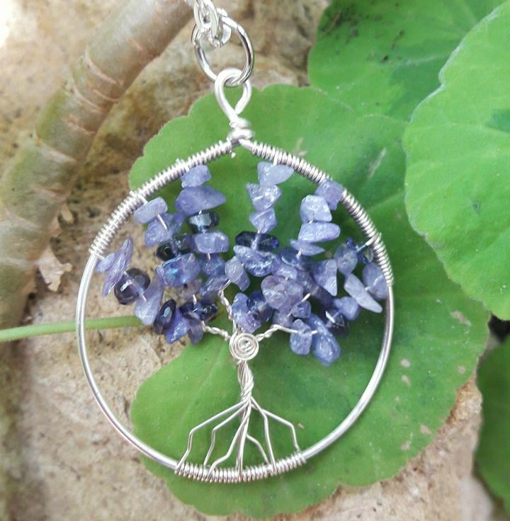 Handmade Wirewrapped tree of life with Tanzanite Gemstone Chips and faceted beads. The first stage of the process is to make the circle, using a thick wire that is shaped around a wooden mandrel. The wire is then cut, wrapped at the top and hammered to work harden the wire (using a nylon tipped hammer).