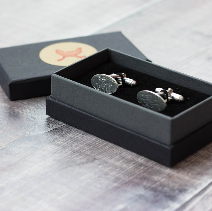 Each pair of cufflinks comes gift boxed in my logo stamped gift box, ready for giving!