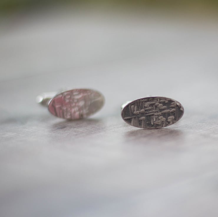 Simple textured oval cufflinks, handmade from Sterling silver.