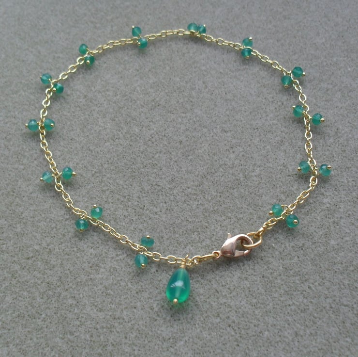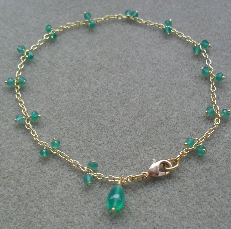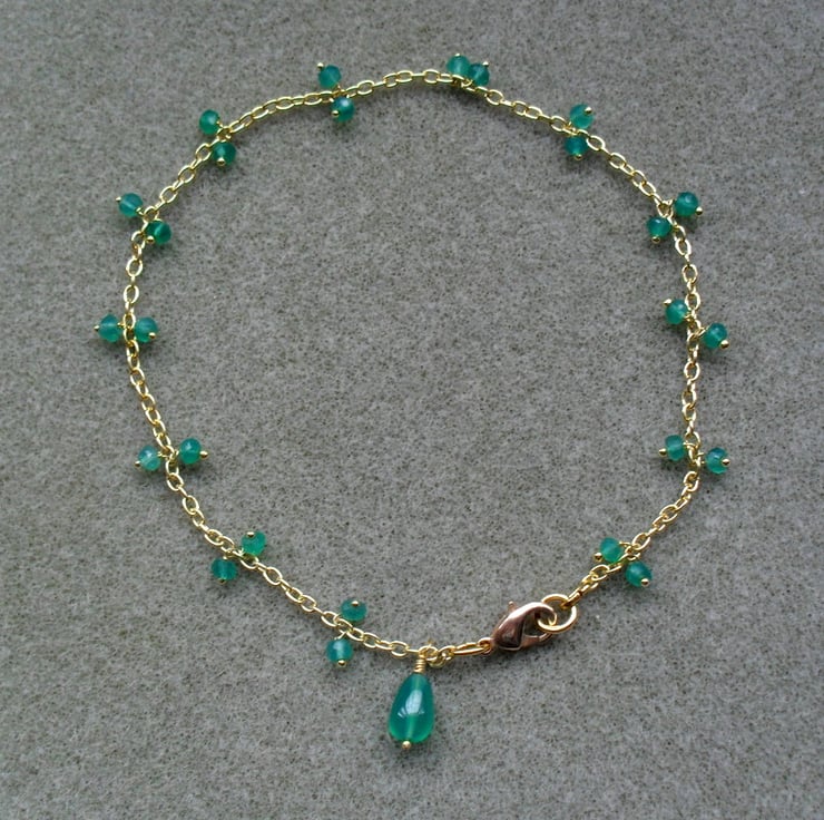 end of line This anklet has been made with gold plated chain which has tiny green onyx semi precious gemstones attached