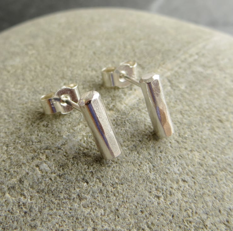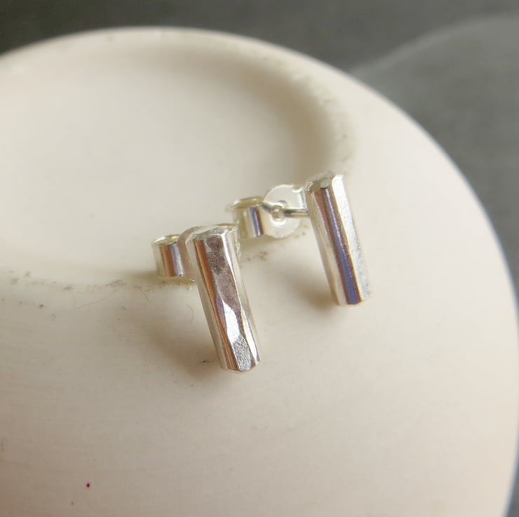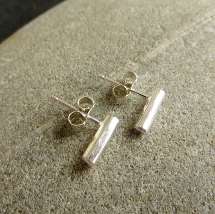 Small Silver Bar Earrings, Minimalist Studs, Contemporary Jewellery