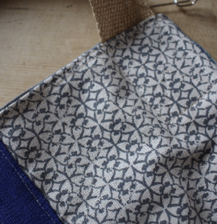 Softly styled patchwork cotton/linen and jute bag. Neutral colours of linen and cotton come together with jute to create an original look.