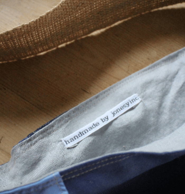 Softly styled patchwork cotton/linen and jute bag. Neutral colours of linen and cotton come together with jute to create an original look.