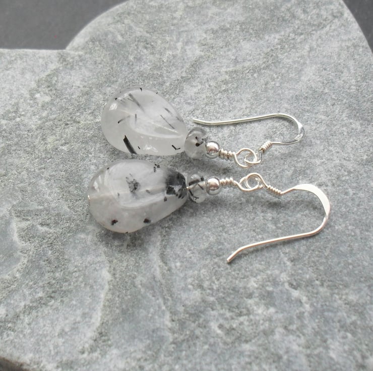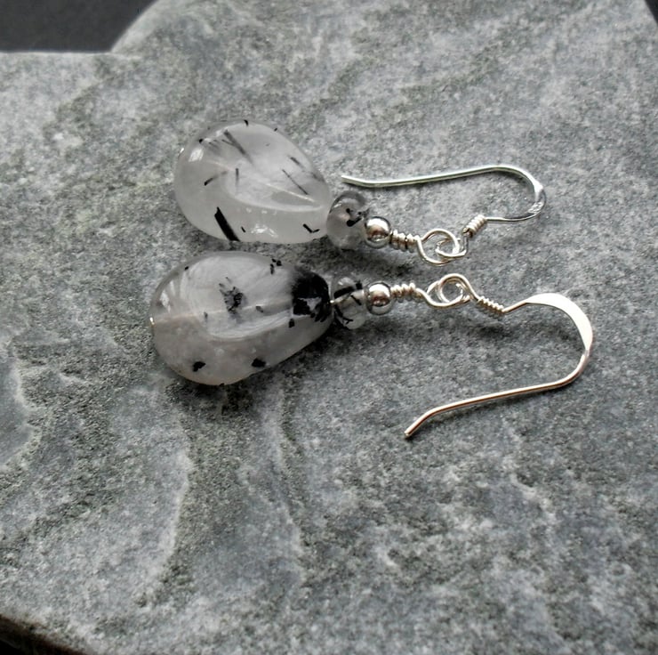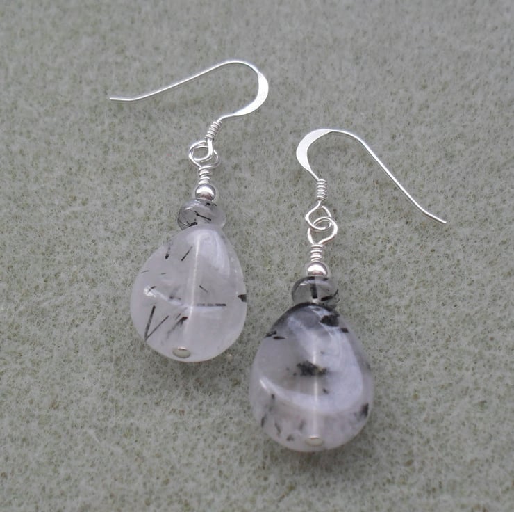 Rutile quartz semi precious gemstone beads with small sterling silver beads are attached to sterling silver ear wires