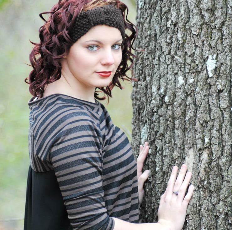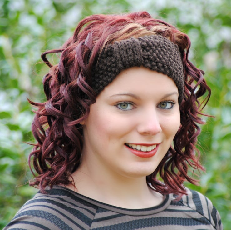 Knitted using 2 strands of acrylic wool together to give a warm ear warmer.