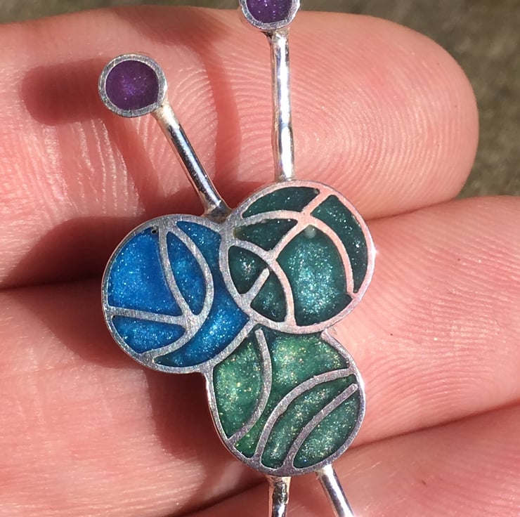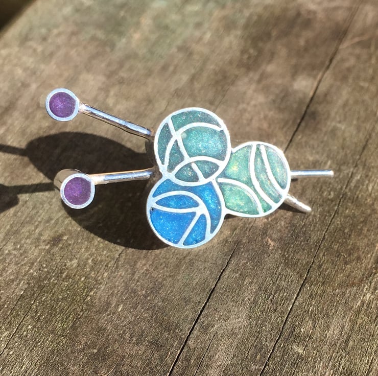 It is handmade in sterling silver and filled with your own choice of coloured pearlescent resin.