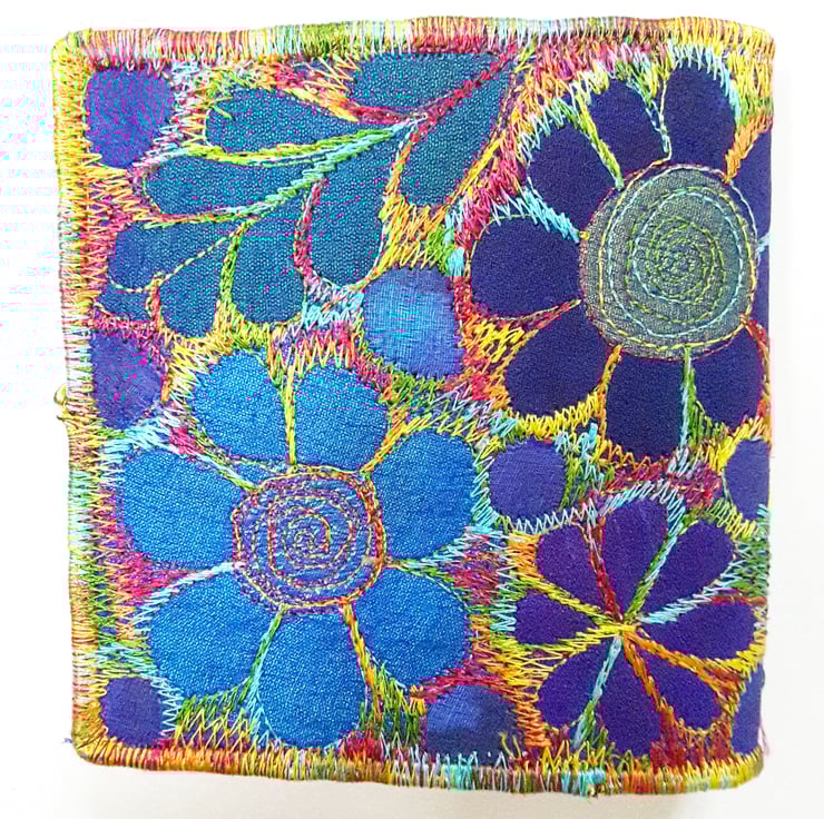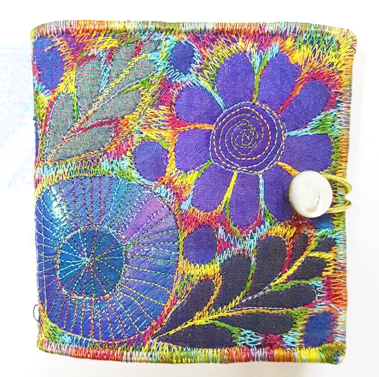 Made from layers of fabric including hand dyed Egyptian cotton and silk fabrics using the free machine embroidery style of sewing