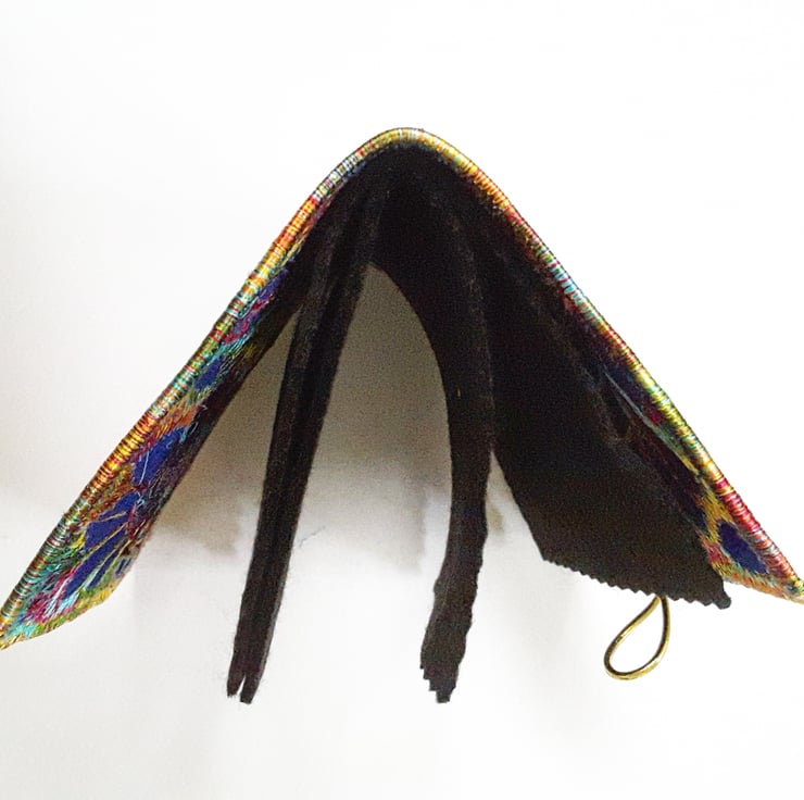 It has 4 leaves of black felt for all your pins and needles and a beautiful mother of pearl button and an elasticated closure.