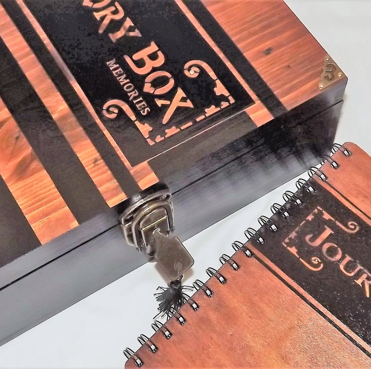 1. LARGE LOCKABLE Wooden JOURNAL / MEMORY BOX.