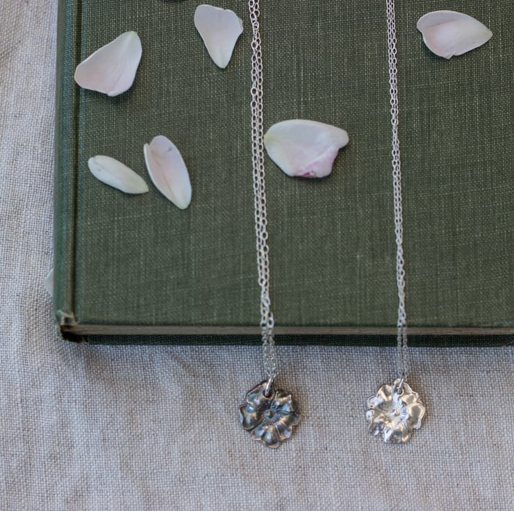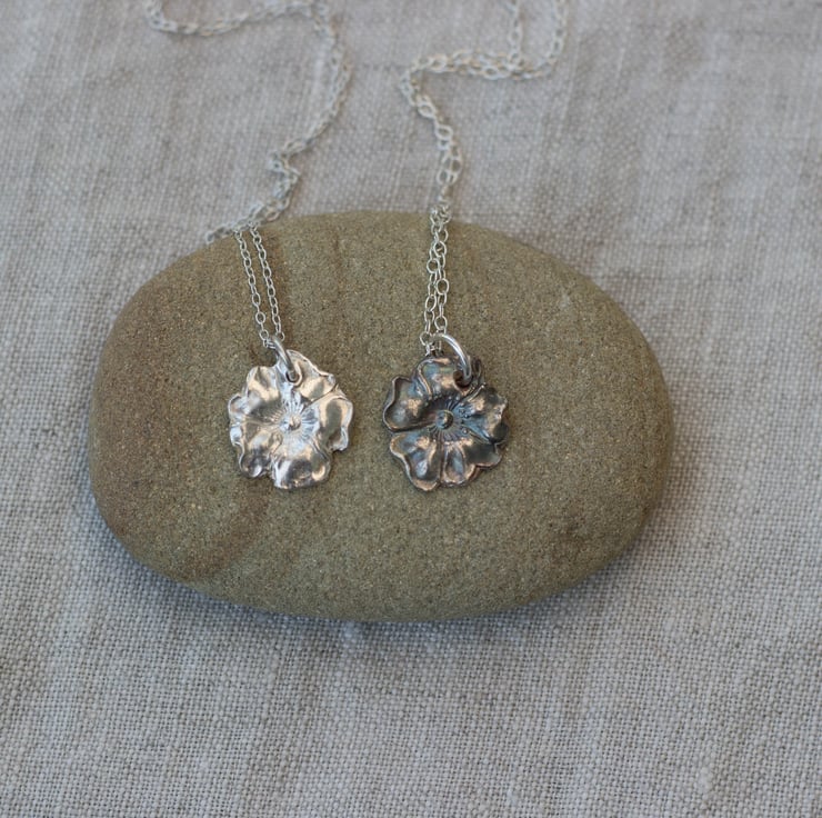 Beautiful wild rose floral pendant, handmade from Eco friendly fine silver.