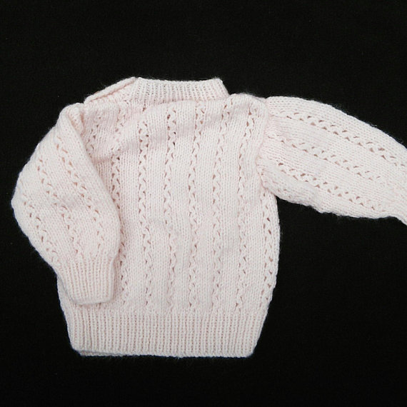 Hand knitted pale pink jumper sweater to fit 18 inch chest