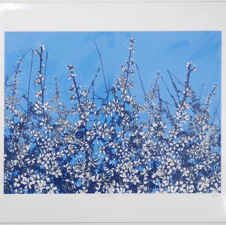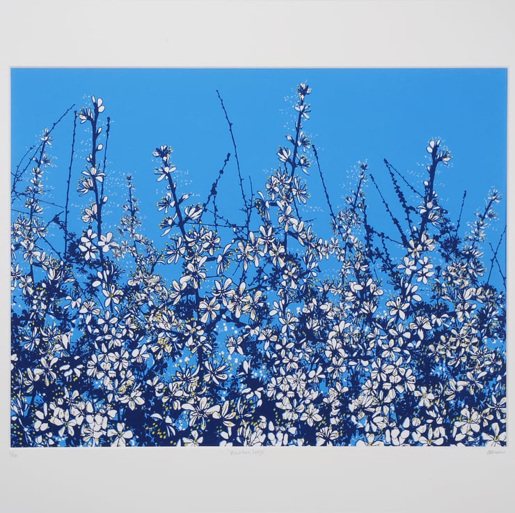 A hand-pulled screen-print called ‘Blackthorn Blossom’.
