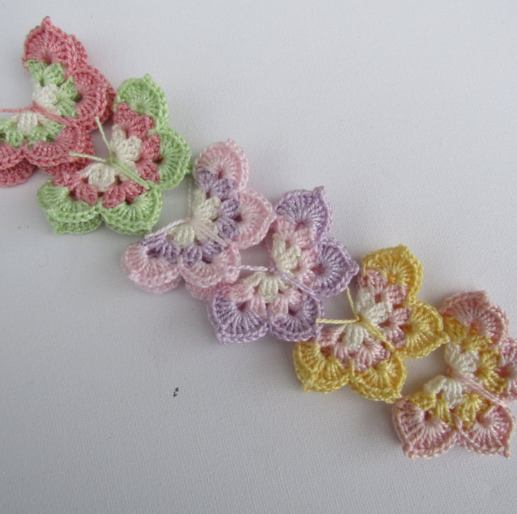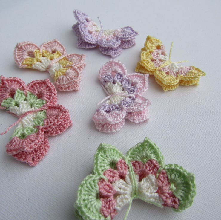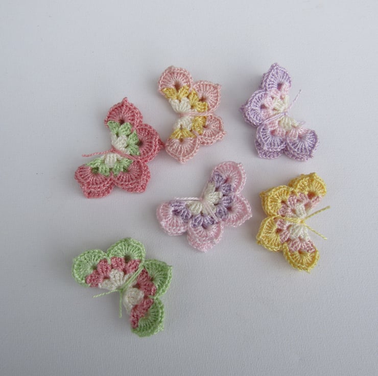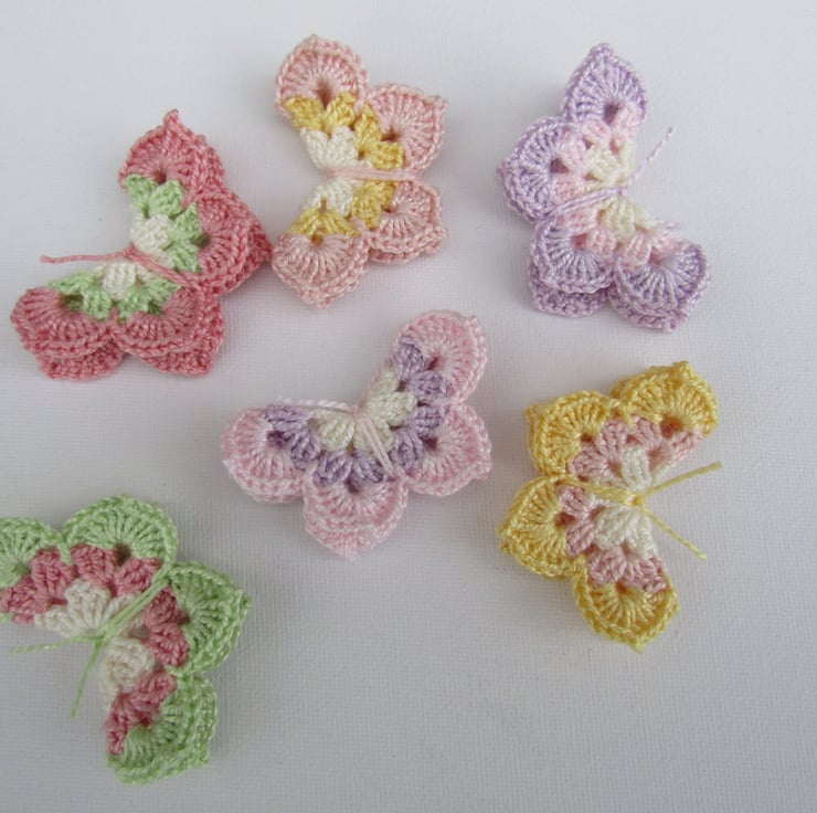 Beautiful crochet butterflies in stunning bright colours. Pack of 6.