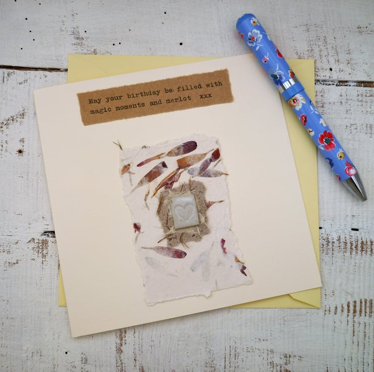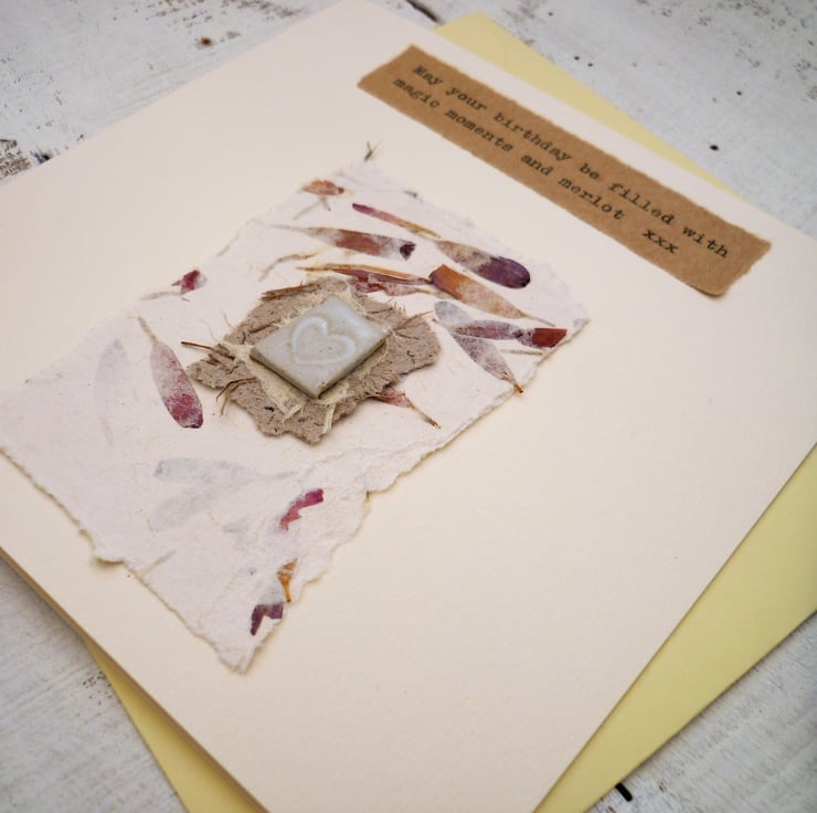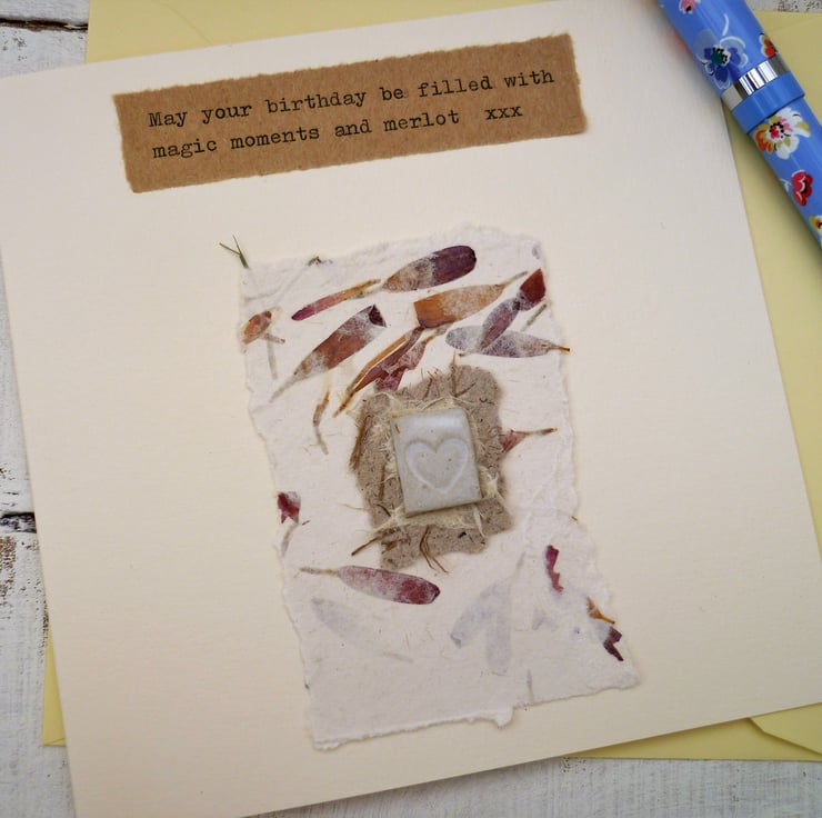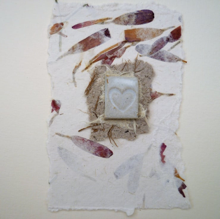 This gift card is perfect to give as a card and gift rolled into one. I have attached a one-off ceramic design to each card so this can be received as a card initially. The piece of pottery and handmade papers can then be framed as a keepsake.
