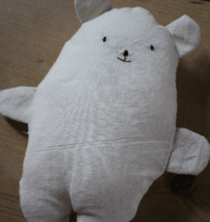A handmade cotton bear - lightly padded, made with soft cotton and has a hand sewn face. Who wouldn't fall in love with this little creature?