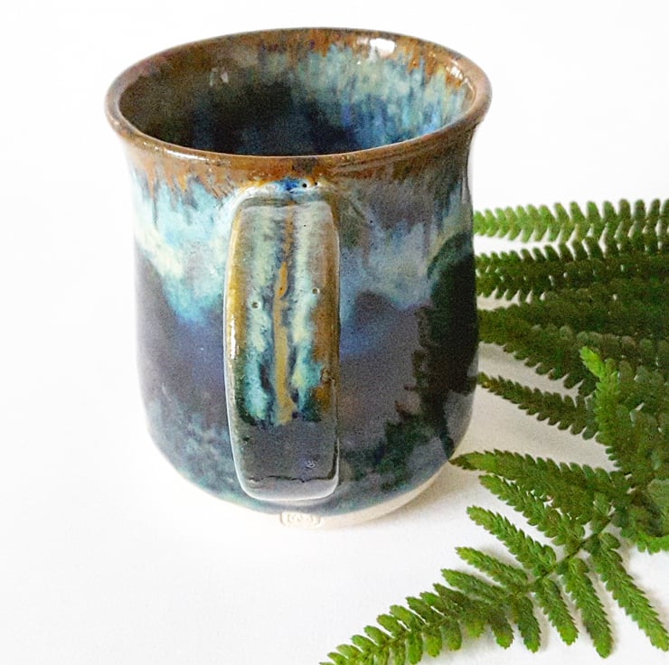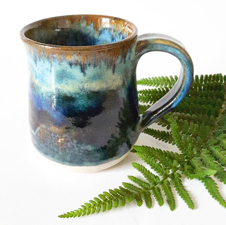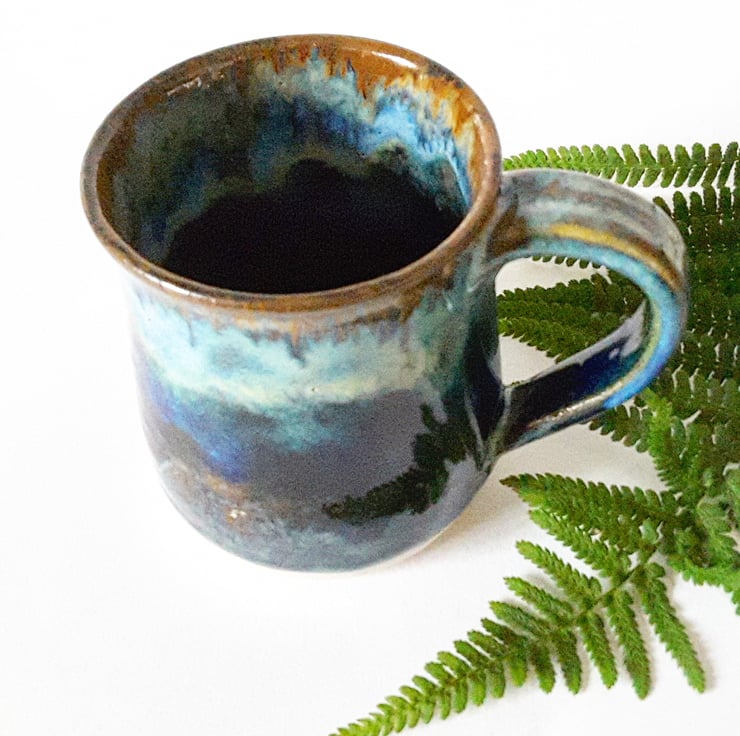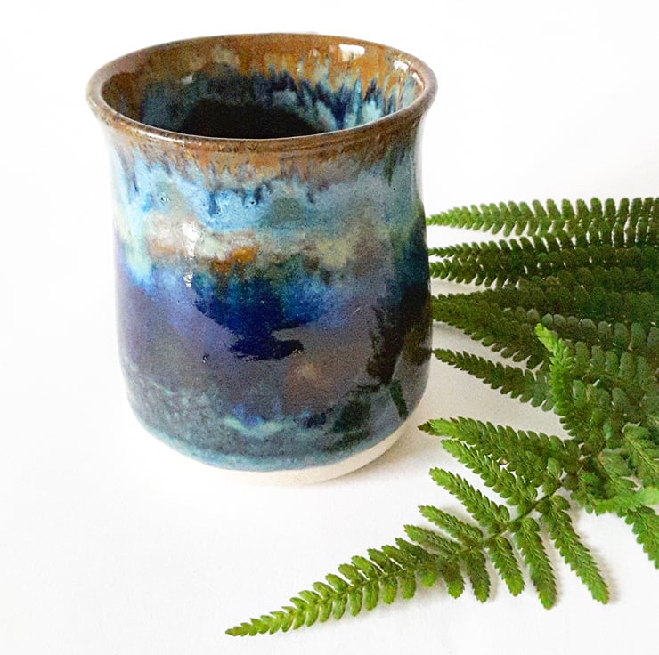 Made from stoneware clay, glazed in a variety of blue glazes and fired to a high temperature so that it is dishwasher and microwave safe.