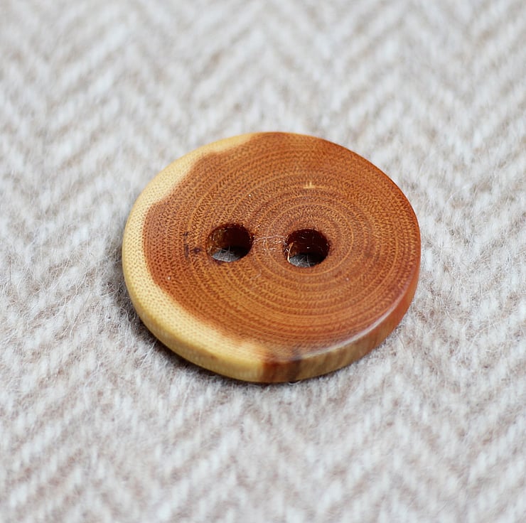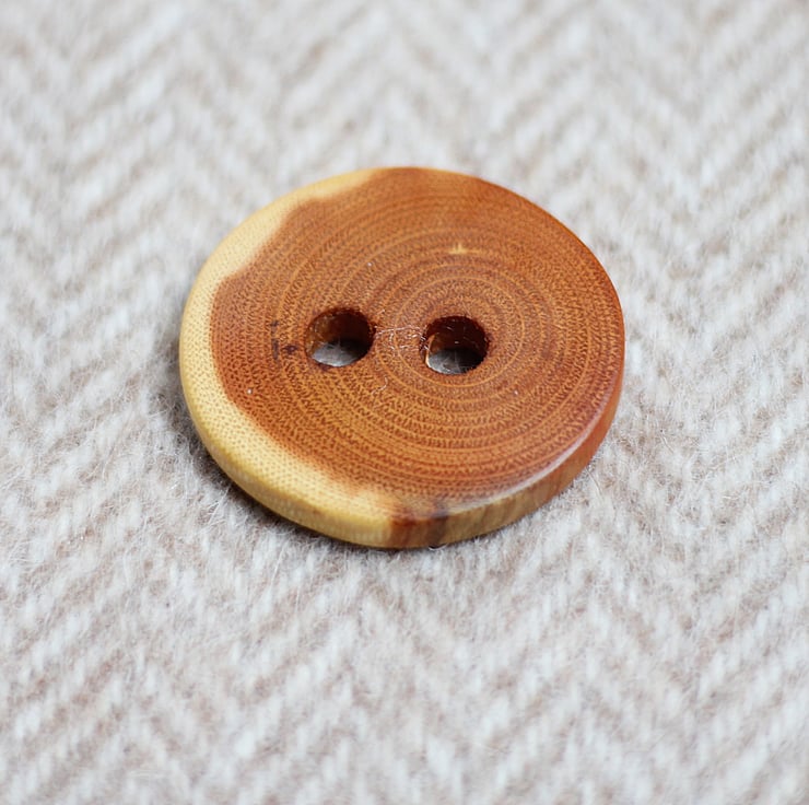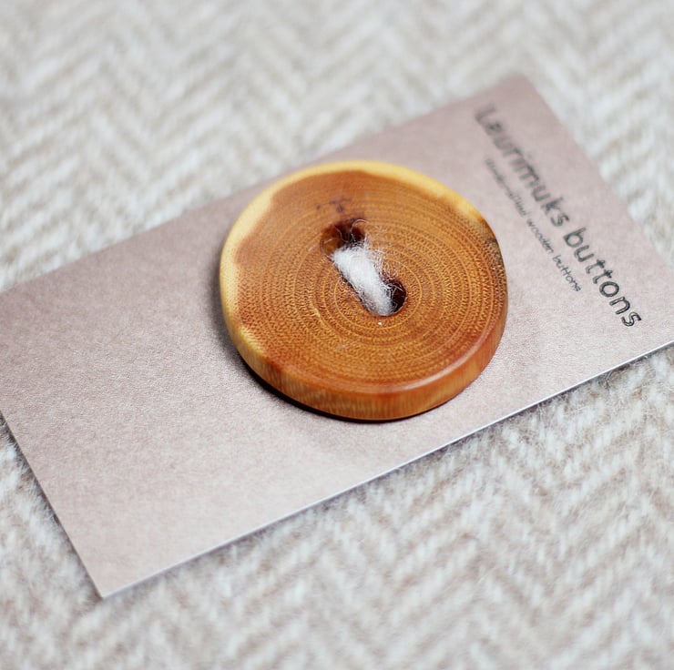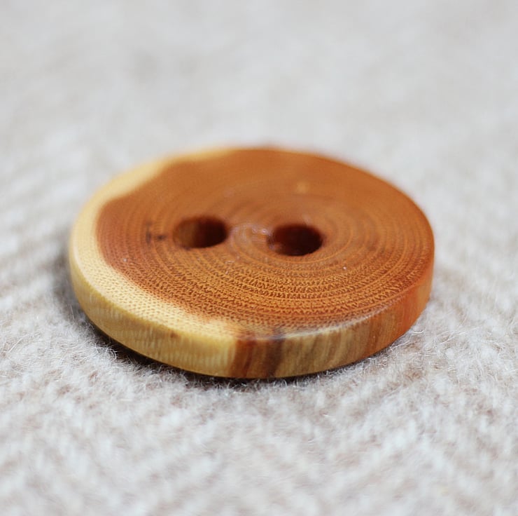 Handcrafted large statement wooden button made out of reclaimed forest tree branch.