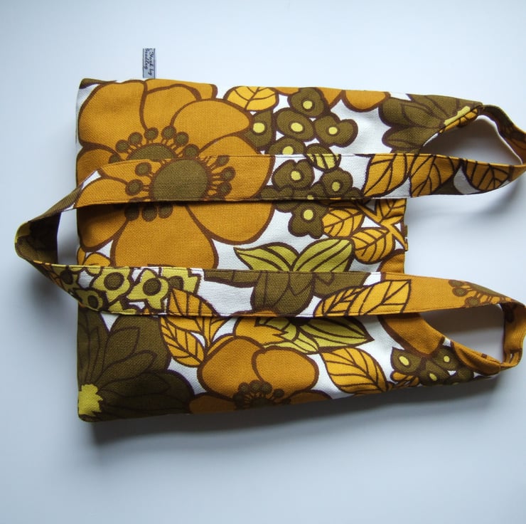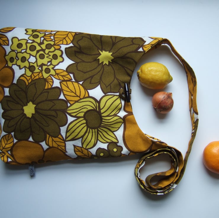 Bold 1970’s vintage floral print across your body bag or beach bag.