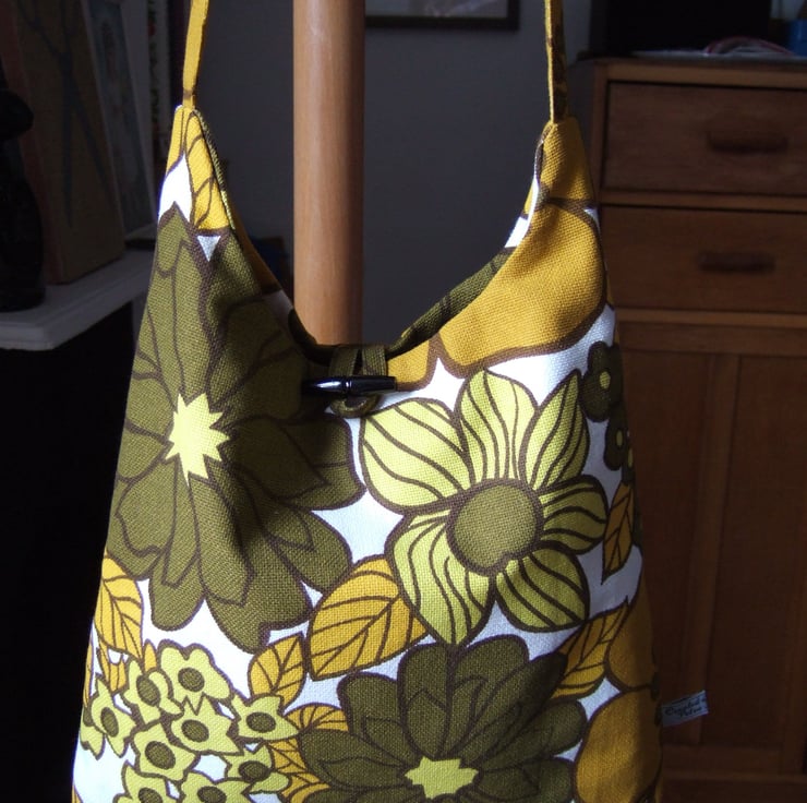 This across your body bag is made from an amazing bold print from a classic co-ordinating bedroom set from the 1970’s.