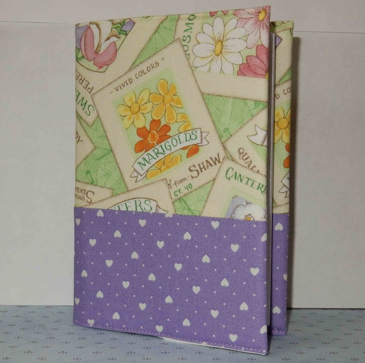 This is a mid year (August 2018 to July 2019) A6 week to view fabric covered diary (approx. 6x4 inches). It is made from a pretty fabric featuring seed packets, and a contrasting heart print fabric .There are plenty of pages for notes too. The cover is lined, interfaced and removes to fit a new diary.