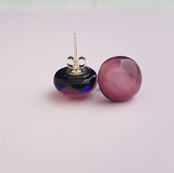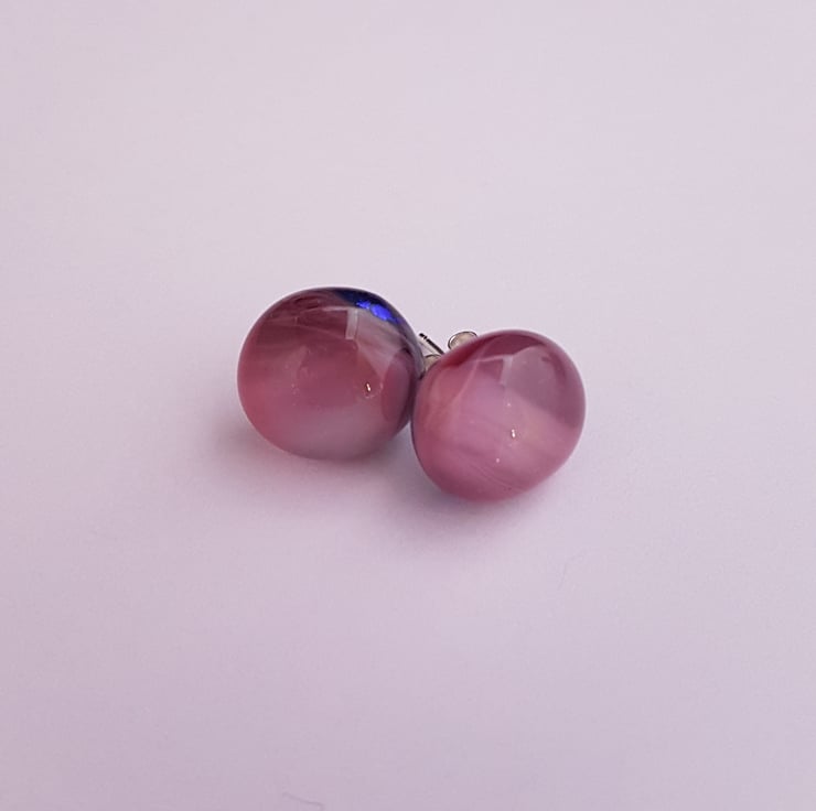 These pretty pink stud earrings are made in a gorgeous petal pink glass and cut by hand.