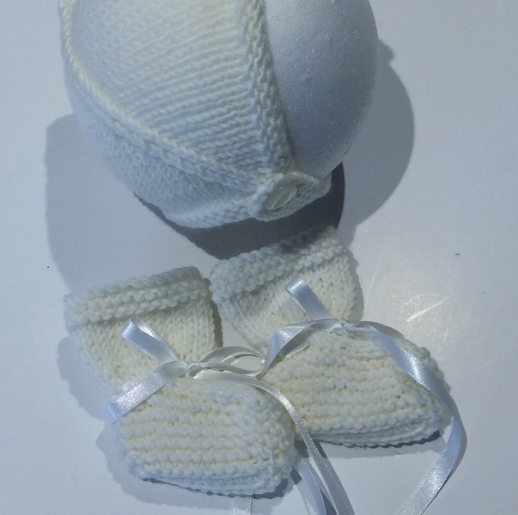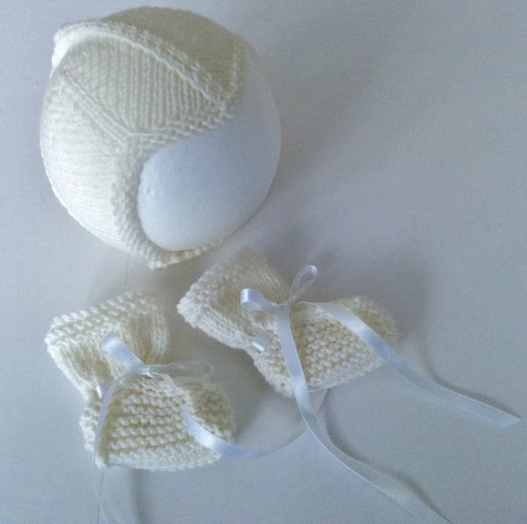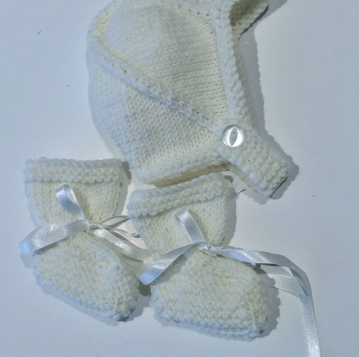 This little set is hand knitted using merino wool and is a new born size