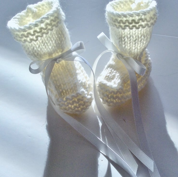 The bootees have a satin ribbon tie