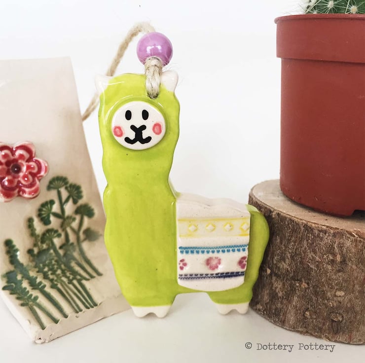 Pottery llama hanging decoration ceramic llama drama llama