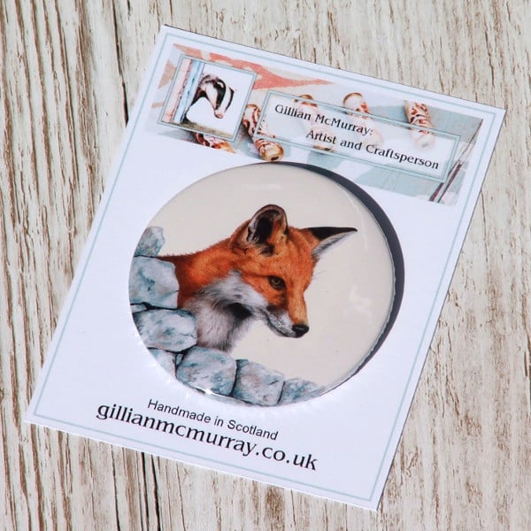 This is a small size, pocket or hand mirror illustrated with a red fox on a cream background. It is 58mm (2.25 inches) in diameter, great for popping into a pocket or handbag and for touching up makeup. Totally handmade by me and packaged on a card backing in a cellophane bag. An unusual way of carrying around a little piece of art and a great gift idea for birthdays, party favours, bridesmaid's gifts, wedding favours, as a thank you or stocking filler.