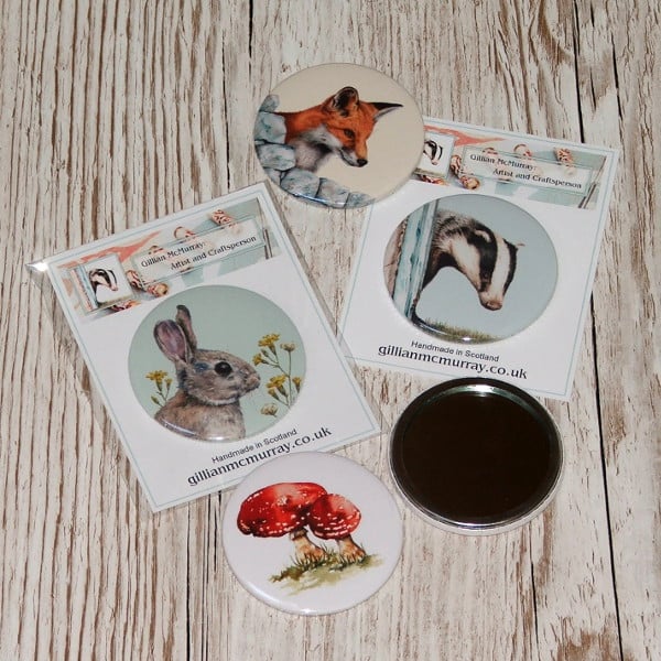 The art on my badges, mirrors, magnets and keyrings is all my own work. The images are taken from some of the wildlife art I have produced over the years that was inspired by local wildlife and painted in coloured pencil or watercolour.