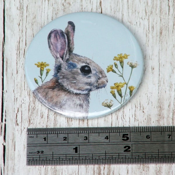 This is a small size, pocket or hand mirror illustrated with a rabbit on a pale green background. It is 58mm (2.25 inches) in diameter, great for popping into a pocket or handbag and for touching up makeup. Totally handmade by me and packaged on a card backing in a cellophane bag. An unusual way of carrying around a little piece of art and a great gift idea for birthdays, party favours, bridesmaid's gifts, wedding favours, as a thank you or stocking filler.