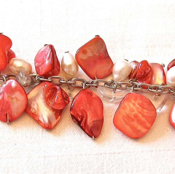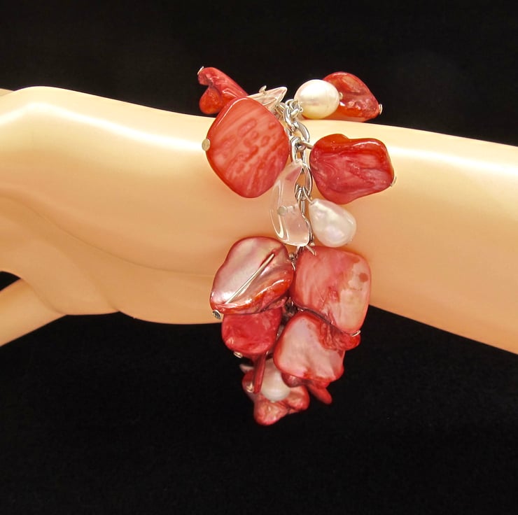 Bracelet: Red Mother of Pearl & White Potato Pearls