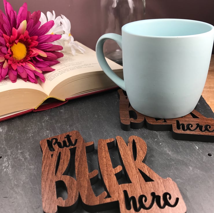 These Put Beer Here Coasters are made to order and are usually made and delivered within one working week (if in the U.K.).