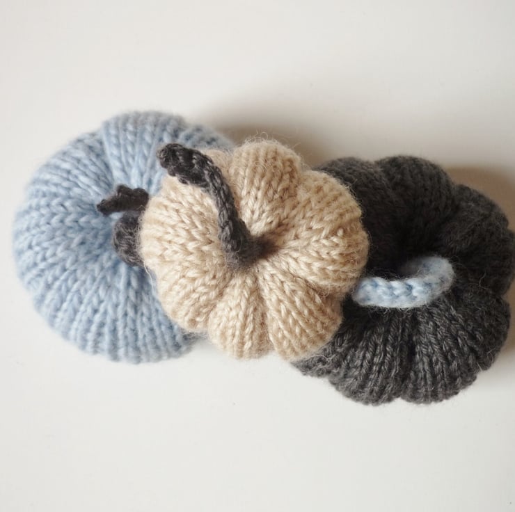 - Wool and acrylic yarns in pastel blue, charcoal grey and bamboo shades.