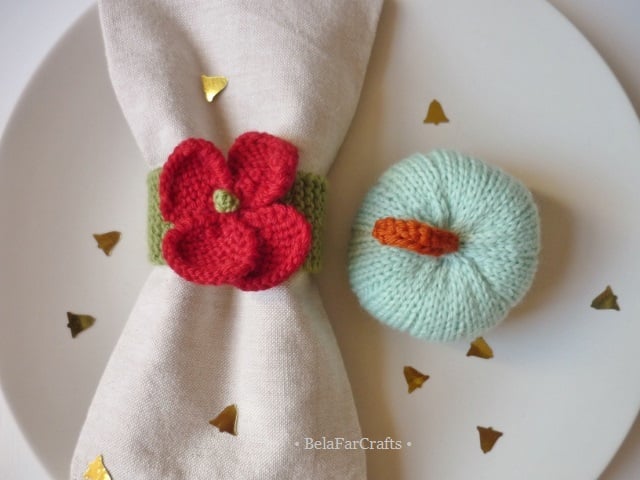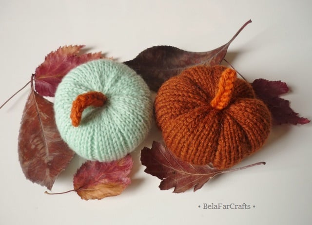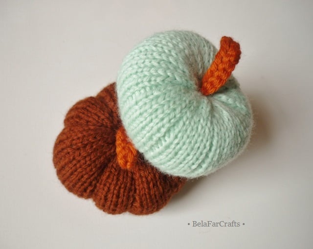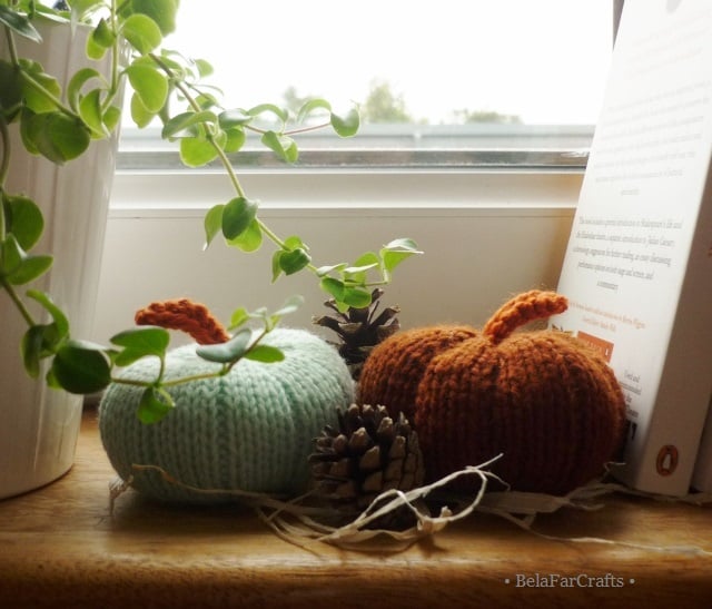 I designed and hand knitted the pumpkins using: