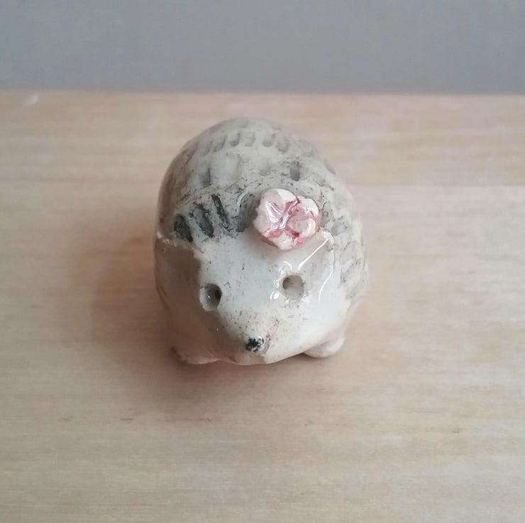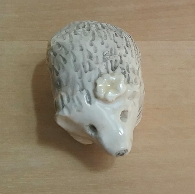 Hand made pottery hedgehog made in white clay hand modelled individually. All hand painted and finished with a shiny clear earthenware glaze.