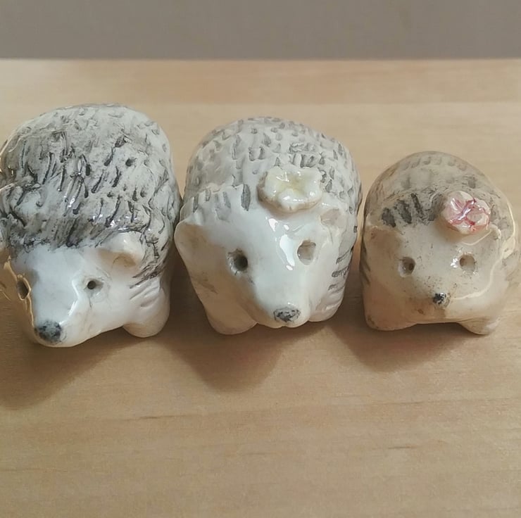 I rather enjoy making these little pet sculptures and each develops there own character during the making process. Have put little flowers on a couple as I have done with guinea pigs in the past. I think they hedgehogs look quite pretty with the addition of flowers.