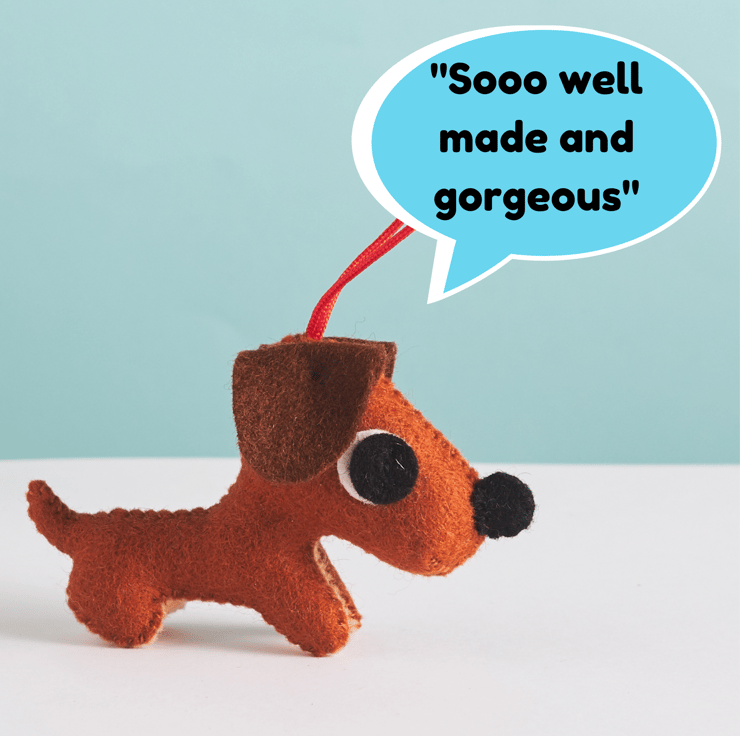 This adorable, mini Dachshund hanging ornament is the perfect sausage dog to hang on a tree, door handle, hook or in your office space. It’s a super cute little gift for a dog lover, but it might be too cute to give away!