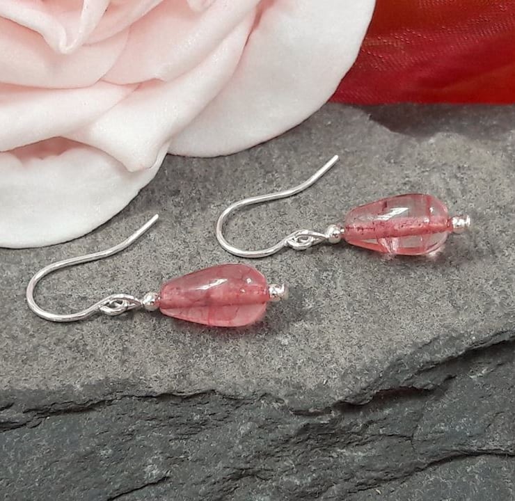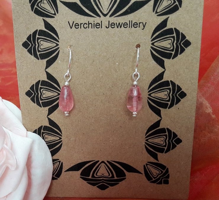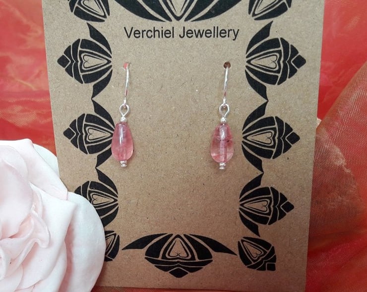 Elegant baby pink coloured crackle quartz teardrop Gemstone Earrings with tiny sterling silver beads and fittings